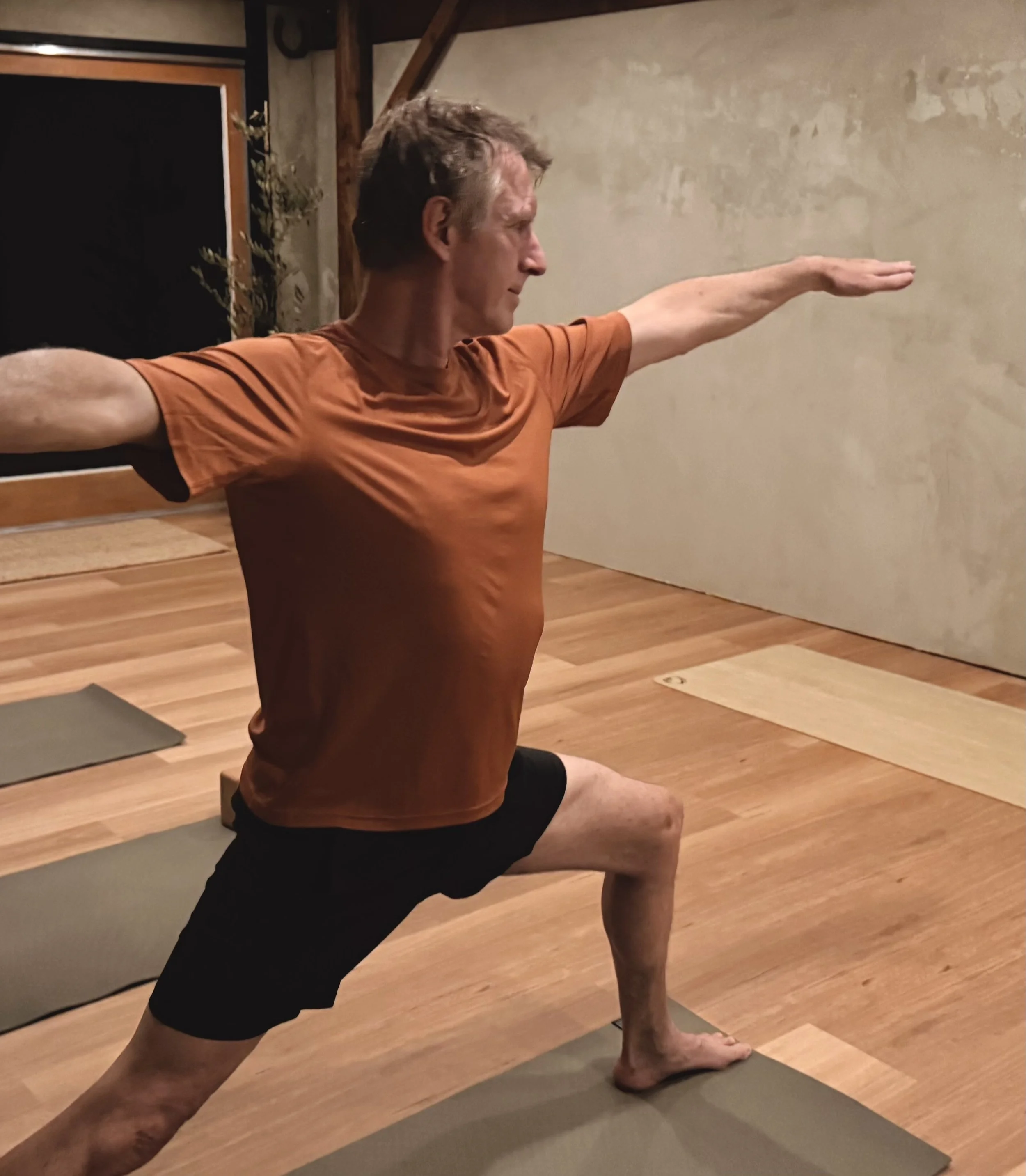 Andrew, a newer yoga teacher with over 40 years of personal yoga practice to draw from and a background in martial arts, teaches with clarity, attentiveness, and a science-informed approach. He combines his understanding of body mechanics with a love for movement as an art form, creating classes that are both effective and engaging.